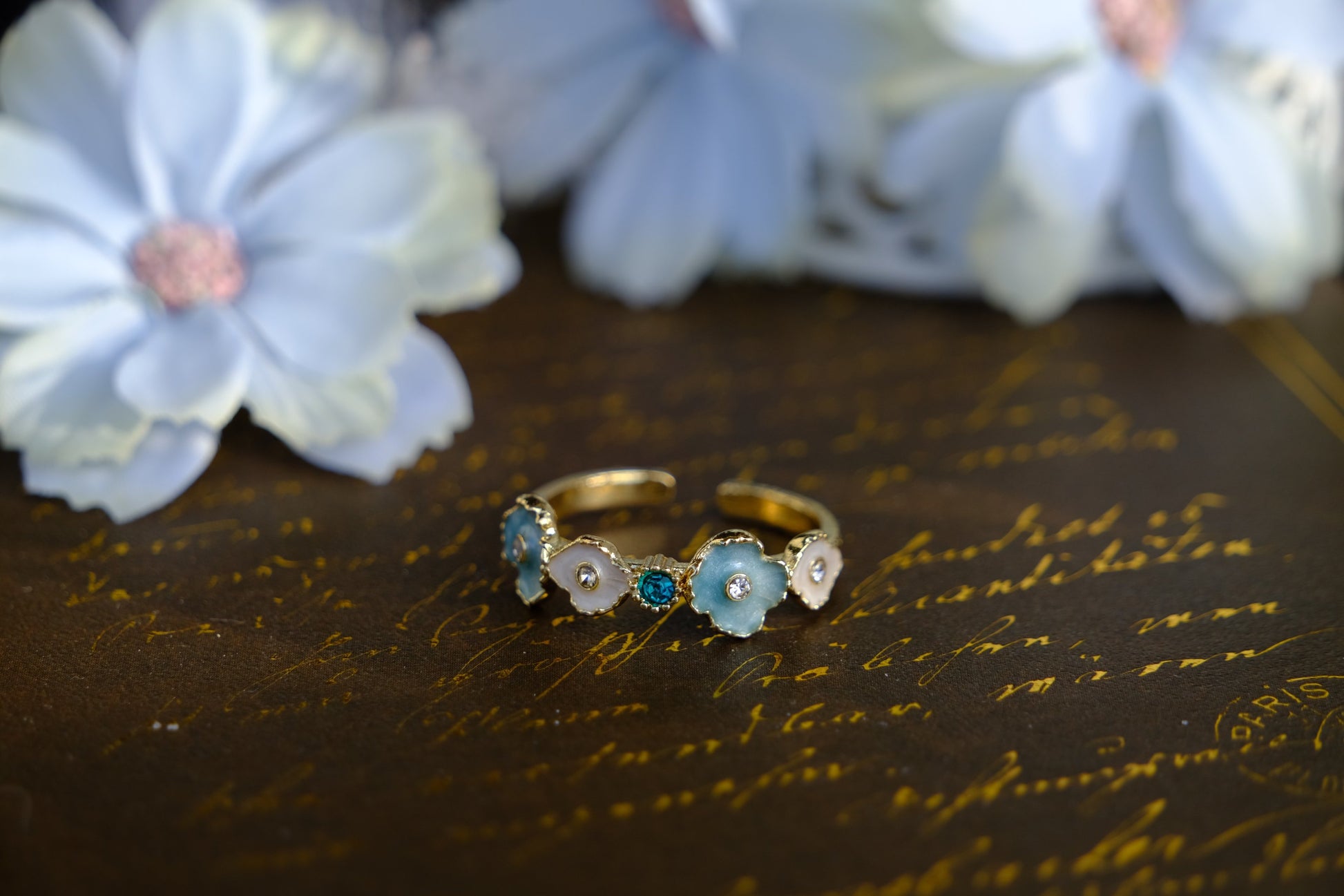 Bloomkeeper is a ring of gentle blue blossoms — each petal carrying a promise of something that’s quietly growing, even when you can’t yet see it.